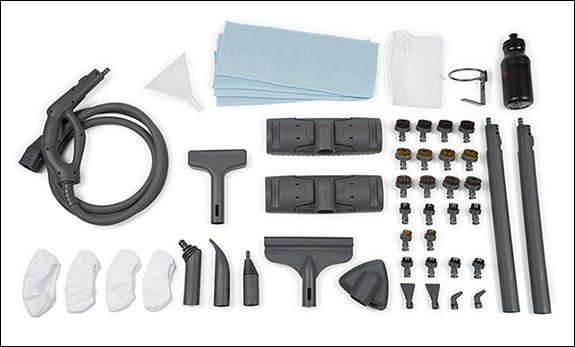 The Forza steamer features commercial grade steel construction, continuous steam flow, computer controlled operation, Italian manufactured CEME brand internal components, specially designed extra large stainless steel boiler with 1700 watt heater, 90 psi steam output pressure, ETL certified, life time warranty, and the largest selection of included accessories. If you are looking for a smaller portable steam cleaner, the Vapamore Amico Handheld Steam Cleaner would be a great alternative.