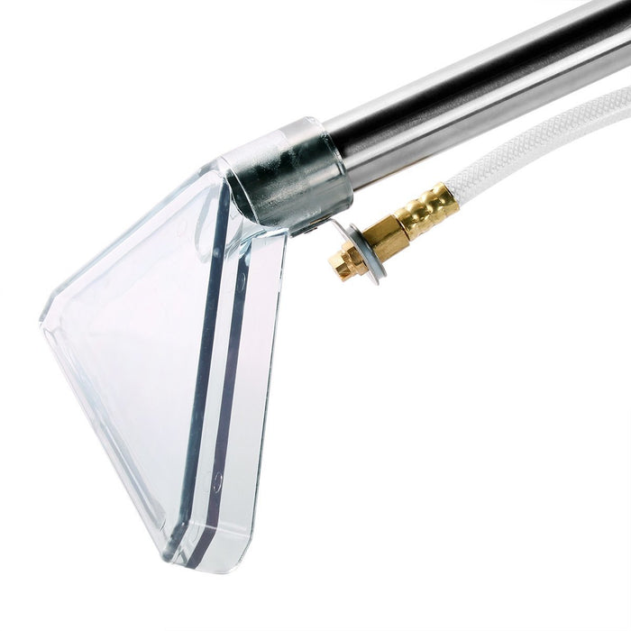This 8" wand is manufactured exclusively for use with the now discontinued Viper Wolf carpet grooming spotter, and any other brand Viper carpet extractor. The wand is 60" long and constructed from aluminum, so it is lightweight, and easy for any operator to use. It has an 8" plastic clear head, allowing you to see exactly what you're extracting from the carpet when you're cleaning. Comes with a single jet and covers an 8" cleaning path on each swipe with the wand.