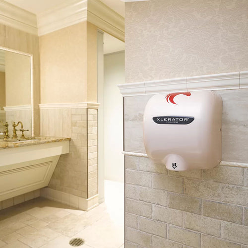 The Xlerator hand dryer is a heavy-duty workhorse that cuts hand drying costs by up to 95% compared to paper towels. It helps to wipe out the mess, labor, and waste that comes with paper towels. With adjustable speed, sound, and heat settings, the Xlerator lets you fine-tune performance for any restroom. Plus, the new motor upgrade gives you 50% longer motor life and it's backed by an industry-best 7-year limited warranty for serious peace of mind.